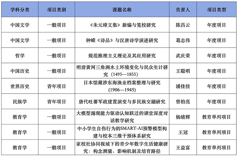 近日,全国哲学社会科学工作办公室正式公布了2025年国家社会科学基金年度项目立项名单。淮阴师范学院共有6个项目获批立项。此前,全国教育科学规划项目立项名单已公布,淮师立项3项。截至目前,今年淮师国家社科基金项目总立项数达9项(含单列学科),包括一般项目7项、青年项目2项。